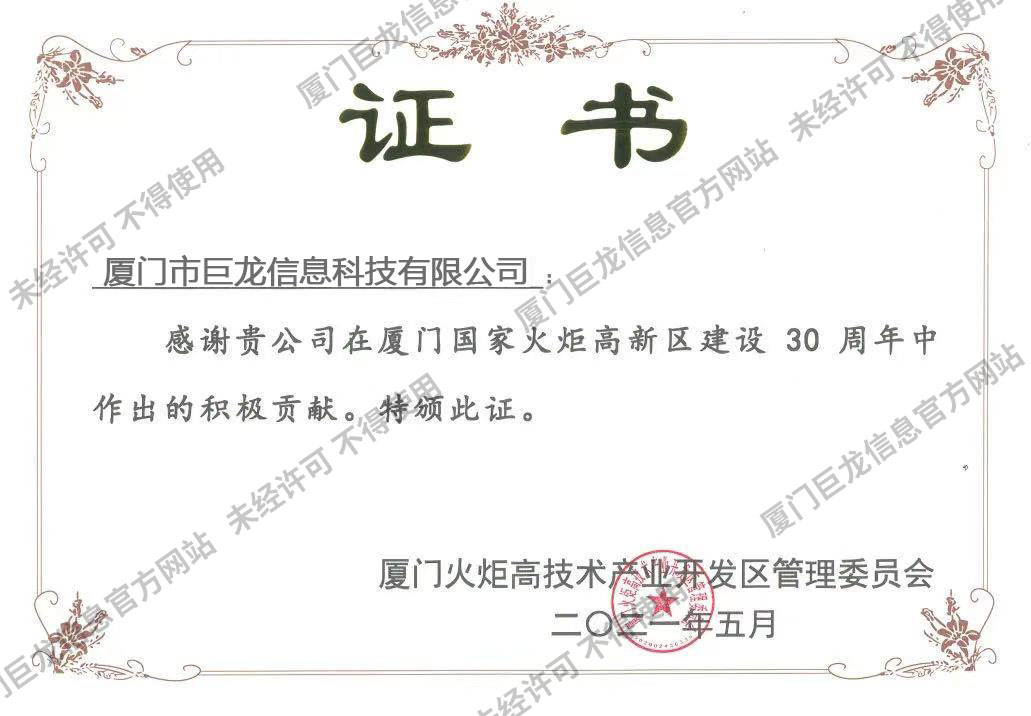 火炬高新區(qū)“突出貢獻(xiàn)企業(yè)”證書