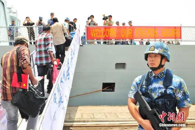資料圖:海軍護(hù)航編隊臨沂艦抵達(dá)也門荷臺達(dá)港,撤離中外人員。中新社發(fā) 熊利兵 攝
