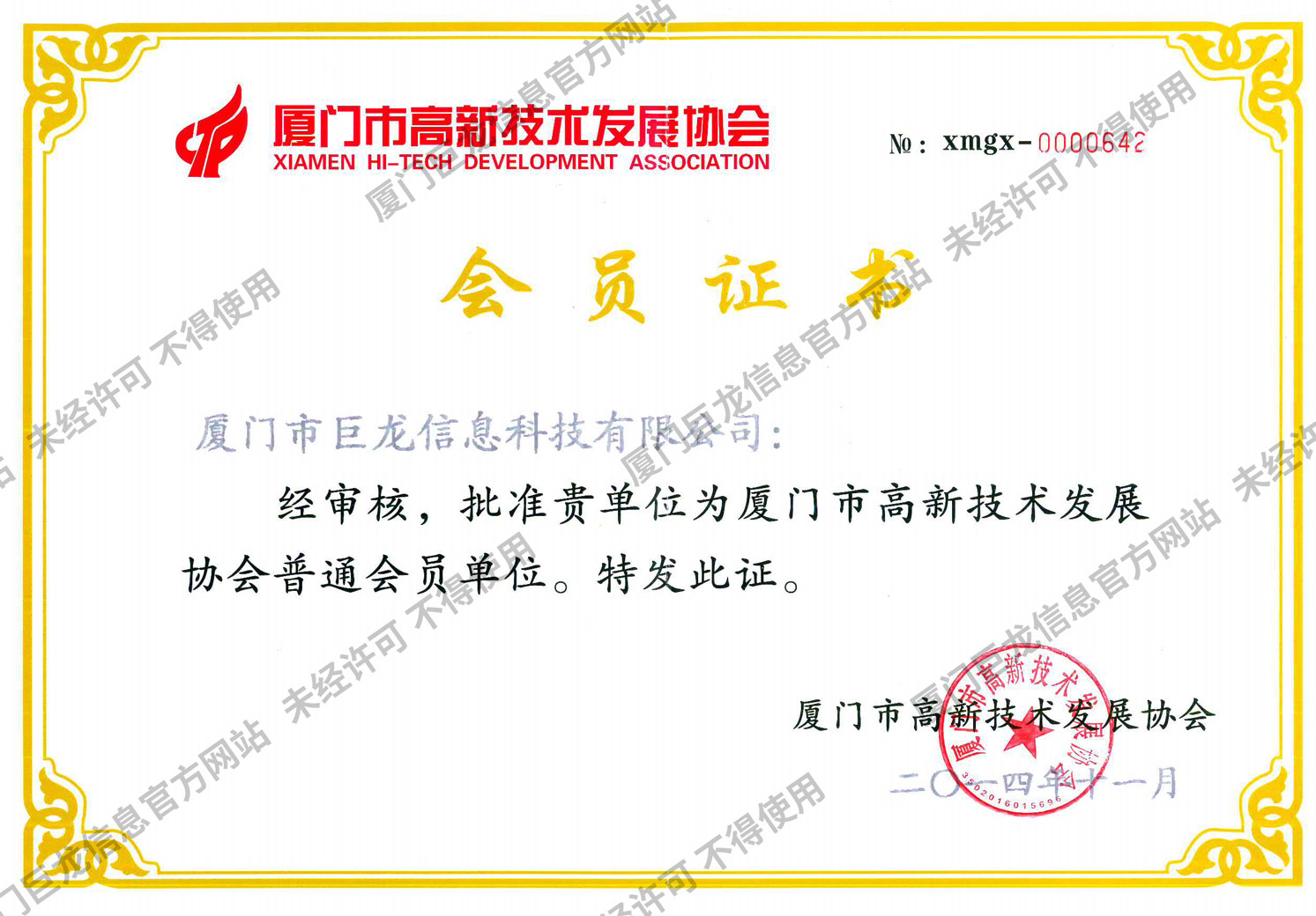 高新技術(shù)發(fā)展協(xié)會(huì)會(huì)員證書