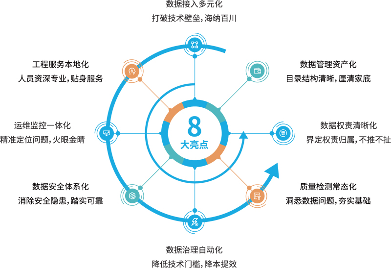 “政務(wù)數(shù)據(jù)治理是大數(shù)據(jù)中心建設(shè)的核心,是政務(wù)服務(wù)優(yōu)化不可或缺的一環(huán),巨龍信息長期深耕在數(shù)據(jù)整合 治理領(lǐng)域,擁有完整的數(shù)據(jù)治理方法論及工具,具備元數(shù)據(jù)管理、數(shù)據(jù)多源采集、數(shù)據(jù)標準化、數(shù)據(jù)血緣分析、數(shù) 據(jù)資產(chǎn)全生命周期管理、數(shù)據(jù)質(zhì)量稽核等數(shù)據(jù)治理全流程能力,將各單位分散的業(yè)務(wù)數(shù)據(jù)整合治理形成統(tǒng)一的 基礎(chǔ)庫、主題庫、專題庫等,并建立完整的數(shù)據(jù)資源目錄,消除“數(shù)據(jù)孤島”,促進數(shù)據(jù)流通與價值提煉,實現(xiàn)數(shù)據(jù) 和業(yè)務(wù)的雙加速。