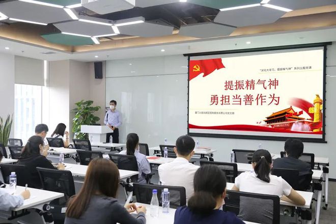接著,招商中心黨支部許峰書記為在座黨員上了一堂主題為《提振精氣神,勇?lián)斏谱鳛椤返狞h課。許峰書記系統(tǒng)講解了擔當一詞的由來和內(nèi)涵,新時代新?lián)數(shù)幕疽?、擔當作為是黨員的基本素質(zhì)以及新時代的黨員干部如何擔當作為,并與在座黨員分享自己的所思所想所悟,進一步激發(fā)黨員干事創(chuàng)業(yè)的精氣神,鼓舞黨員擔當作為的高昂士氣,筑牢信仰之基、補足精神之鈣、把穩(wěn)思想之舵。