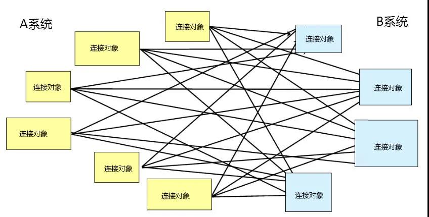 ■如果連接對象各自的連接方式有差異,如:對于程序的連接,如果溝通的語言、文字、格式、方法等有差異,則每一個連接方都要同時支持和維護多種連接方式。