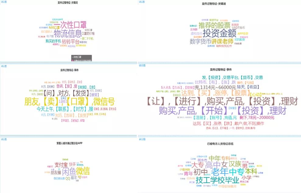 解決方案:通過自然語言處理精準(zhǔn)提取涉詐人員特征,關(guān)聯(lián)挖掘不同詐騙類型的特征畫像,快速分析詐騙手法;構(gòu)建被詐騙人員知識(shí)圖譜,通過分類、預(yù)測(cè)與推薦識(shí)別未來可能的被詐人員,提升人員防詐針對(duì)性與有效性;深度分析不同詐騙類型的高發(fā)區(qū)域,通過精準(zhǔn)宣傳降低防詐宣傳成本;構(gòu)建詐騙類型知識(shí)圖譜,通過機(jī)器學(xué)習(xí)快速分析新詐騙類型的手法,反哺涉詐人員特征分析與預(yù)測(cè)防范。通過整體態(tài)勢(shì)報(bào)告,可以方便領(lǐng)導(dǎo)決策防犯重點(diǎn)。